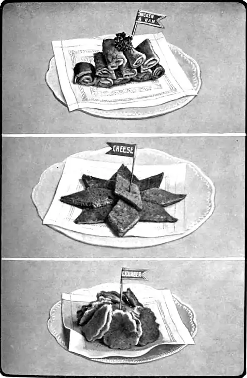 1. Chicken and Ham Sandwiches. 2. Cheese Sandwiches. 3. Cucumber Sandwiches.
