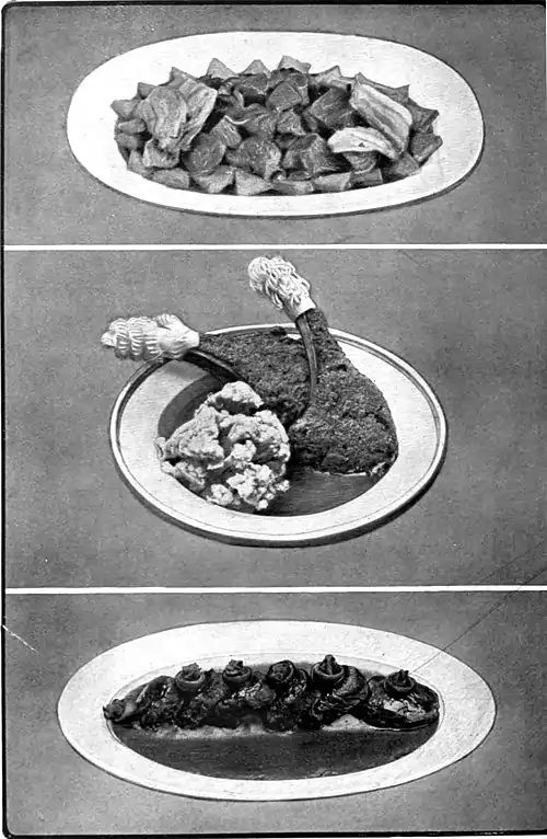1. Ragoût of Veal. 2. Mutton Cutlets with Cauliflower. 3. Tournedos of Beef with Stuffed Olives.