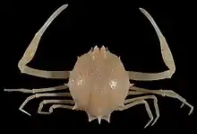 - Naruse, T. 2014: Description of two new species of Arcania Leach, 1817, from the western Pacific Ocean and redescriptions of A. undecimspinosa De Haan, 1841, and A. elongata Yokoya, 1933 (Crustacea: Brachyura: Leucosiidae). Zootaxa 3814(3): 301–332. DOI: 10.11646/zootaxa.3814.3.1 Reference page.