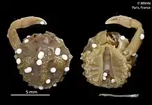 Reference page. - Karasawa, H. 2010. Philyra collinsi, new name for Philyra granulosa Morris and Collins, 1991 (Decapoda: Brachyura: Leucosiidae). Bulletin of the Mizunami Fossil Museum (36): 131. PDF.