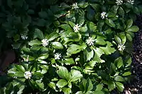 |  inflorescence and foliage Wikipedia • Commons • Wikibooks (horticulture) • Wikibooks (subject) • Wikispecies • Fruit and seed clock | Profile for Pachysandra terminalis  (Pachysandra)