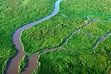 A tributary is a river or stream that flows into a large river or lake