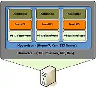 A piece of computer software, firmware or hardware that creates and runs virtual machines.[16]