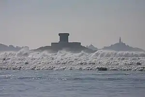[...] of unknown origin, outside connections "wholly doubtful" [Buck]. - ↑ La Rocco Tower with La Corbière lighthouse in the background.