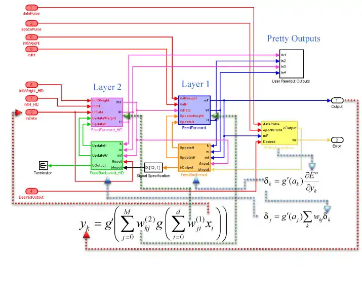 One can also look at a feedforward neural network trained with back propagation as a Simulink circuit diagram.