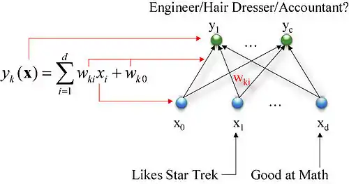 As a mad scientist, you will need to adjust this social network in order to create optimal actions in the market place. You do this using your secret Trust 'o' Vac 2000. With it you can increase or decrease each trust weight how you see fit. You then observe the trades that are made by the rich dudes. If the trades are not to your liking, then we consider this error. The more to your liking the trades are, the less error they contain. Ideally, you want to slowly adjust the network so that it gets closer and closer to what you want and contains less error. In general terms this is referred to as gradient descent.