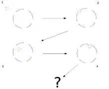 So, what can happen after situation 3 ? This is completely in our hands. In most projects very likely the vandal is being "fought" and is "brought" back to a previous state (and the game can continue again from that state). The more effort-taking way is to help the circle understand and realize what Wikiversity is about and ultimately making the circle contribute also to Wikiversity's mission.
