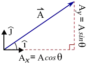 A vector can be expressed as, , where , and are the x and y components. Alternative notation for the unit vectors include and . An important vector is the displacement from the origin, with components are typically written without subscripts: . The magnitude (or absolute value or norm) of a vector is is , where the angle (or phase), , obeys , or (almost) equivalently, . As with any function/inverse function pair, the tangent and arctangent are related by where . The arctangent is not a true function because it is multivalued, with .