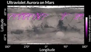 - ↑ Nick Schneider (19 March 2015). Martian aurora, high-altitude dust clouds surprise scientists. Science News. Retrieved 2015-12-02.
