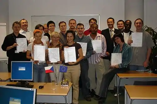 We're proud of our graduates, and very pleased with how well Wikiversity has served as a platform for developing and delivering educational content. See an anonymous student's examination.  Level 1 and Level 2 Technical Writing graduates, Prague, Czech Rep. December, 2007. |