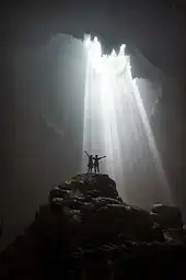 - 🌍 Jomblang Cave (Goa Jomblang), Wonosari, Yogyakarta. A 50-metre vertical collapse-doline cave and a forest at the bottom of the sinkhole. Connected to the Grubug cave, where you can see rays of sunlight shining through the roof of the cave.
