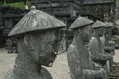 - 🌍 Tomb of Minh Mang (12 km). In this opulent complex, the main buildings are arranged on an east-west axis, including a courtyard surrounded by warrior statues and several temples and pavilions. Several bridges cross two lakes before the axis ends before the vast burial mound (which is circled by a fence). The mausoleum features large gardens and lakes: a pleasant place to sit and relax. If you're dropped off by boat note that there is a stretch of souvenir sellers to navigate during the short walk to the mausoleum entrance. Adult 150,000 dong, children 30,000 dong. (updated Feb 2020)
