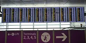 | Terminal 3 Oneworld (except British Airways, Malaysia Airlines, Qatar Airways and Iberia flights), Etihad Airways, Virgin Atlantic, WestJet, and other non-aligned airlines |