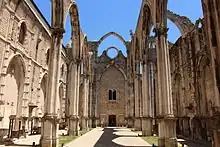 - 🌍 Igreja do Carmo, Largo do Carmo (Lift stop Rua da Prata 54E or metro station Baixa-Chiado Azul Verde ), ☏ +351 213 460 473, [email protected]. Oct-May: M-Sa 10:00-18:00; Jun-Sep: M-Sa 10:00-19:00; closed Su, 1 Jan, 1 May, 25 Dec. The hilltop church of the former convent of Carmo is a towering memorial of the 1755 earthquake, which made the roof of the church collapse, but the Gothic arches of the nave survived. The church was preserved that way and now serves as the Museu Arqueológico in the extant parts of the building. The museum houses a hodgepodge of archaeological artifacts from around Portugal and the world including mummies from South America, tombs of Portuguese rulers, and the Stations of the Cross on 18th-century painted tiles. The assorted artifacts are not well explained, but the church is a sight to see and visitors come to relax in the grassy nave of the church, and draw or photograph the spires. €4 (adults), €3 (students/seniors), €3.20 (Lisbon card), free (children under 15). (updated May 2017)