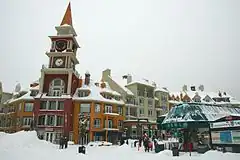The pedestrian village has a good selection of stores, with a predictable emphasis on high-end winter clothing, winter sports goods and maple syrup-themed souvenirs. There is also one smallish supermarket and several convenience stores for daily necessities. Prices for such convenience can be on the high side though, and you may be able to save quite a bit by visiting the original village or stocking up at nearby St Jovite instead.