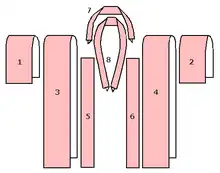 - Obiage – ¥1500, it's a bit difficult to get these cheap; the cheaper versions are often poor quality. You can always dye them a darker colour if you don't like the color, and in a pinch, a nice scarf will likely do the same job.