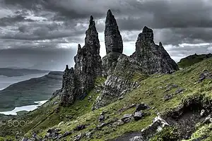 - Trotternish, the peninsula north of Portree, was distorted by a huge landslip 10,000 years ago at the end of the last Ice Age. The ice had been supporting the mountainside, which collapsed leaving strange exposed rock formations. The Old Man of Storr is a rock pinnacle seen from the road, and Kilt Rock is a dolerite sea cliff that doesn't much resemble a kilt. The Quiraing is a weird plateau hidden by rock pillars - you only get a limited view from the road, so take the four-mile loop walk to get close.