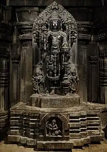 Somnathapura (alternative spelling: Somanathapura or Somnathpur) is a town in Karnataka close to Tirumakudalu Narasipura Taluk. The area was ruled by the Hoysala Dynasty. A minister of the Hoysala dynasty, by name Somanath, planned to establish a temple here, based on the Hoysala architecture. As Hoysalas were mainly Lord Vishnu devotees, a temple, dedicated to Lord Chennakeshava, an incarnation of Lord Vishnu with a flute (Resembling Lord Krishna) was established here, on the left bank of River Cauvery