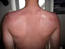 inflammatory reaction from ultraviolet radiation characterized by transient redness, tenderness and occasional blistering
