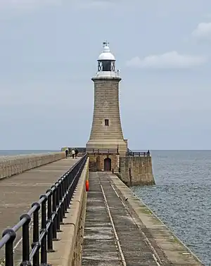 - 🌍 Tynemouth Pier Lighthouse stands at the end of the half-mile (810 m) breakwater, which was built 1854-95 then again to 1909 when the sea showed its contempt for the first version. A railway track on its leeward side was used during construction: they've missed a chance here for a catchpenny tourist ride. The lighthouse remains active and was automated in 1967: its range is 30 miles / 48 km.