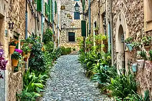 Valldemossa is a village in the hills of Serra de Tramuntana in Mallorca, with a population of 2000 in 2023. The reason to visit is its 14th century Charterhouse, which has been a palace, monastery, secular accommodation and now a museum. George Sand stayed there with Frédéric Chopin and wrote an uncomplimentary travel novel, Un hiver à Majorque, "A Winter in Majorca". Warmer in his words was Archduke Ludwig Salvator of Austria, who became a champion for Mallorca wildlife, and settled in nearby Deià.