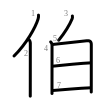 伯 (Kangxi radical 9, 人+5, 7 strokes, cangjie input 人竹日 (OHA), four-corner 26200, composition ⿰亻白)