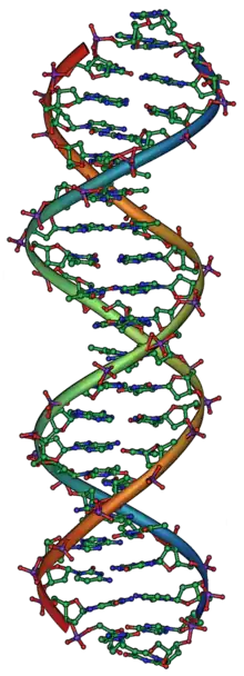 • 1953 April 25, J[ames] D[ewey] Watson, F[rancis] H[arry] C[ompton] Crick, “Molecular Structure of Nucleic Acids: A Structure for Deoxyribose Nucleic Acid”, in Nature: A Weekly Illustrated Journal of Science, volume 171, number 4356, London: Macmillan and Co.; New York, N.Y.: The Macmillan Company, →OCLC, archived from the original on 2015-04-03, page 737, column 1: