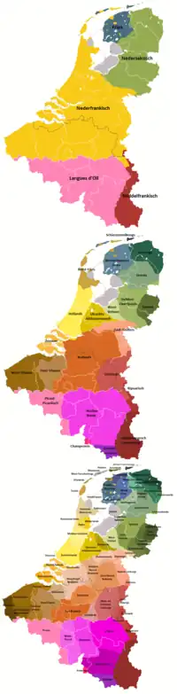 Position of Dutch Low Saxon dialects (colour: shades of green) among the other minority languages, regional languages and dialects in the Benelux