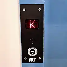 - Abbreviation of källare, källarplan or källarvåning (“basement level”).