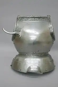 Breastplate with a lance rest on the wearer's right side.