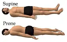 - the hand is in the prone position typically when using a keyboard; and the forearm is then also in the prone position; when the foot is resting on the inner side of the sole, it is in the prone position.