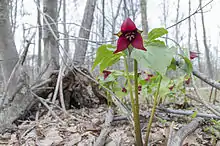 - (Trillium erectum): wake-robin, purple trillium, Beth root, stinking Benjamin