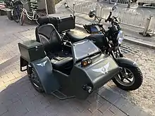 - A one-wheeled attachment to the side of a motorcycle to allow for a separate seat for a passenger or cargo space.