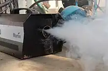 - A device that emits a dense vapour that appears similar to fog or smoke, used in theatre, film and other applications.