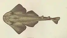 An 1877 illustration of an angelshark or monkfish (Squatina squatina), the type species for squats or angel sharks
