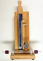 - column (part of a thermometer or barometer: a thin tube filled with a liquid substance, usually mercury)
