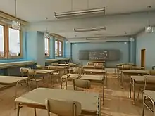 - classroom, schoolroom (a room, often in a school, where classes take place)